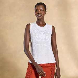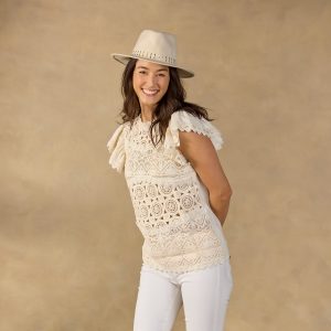A feminine touch in every detail. our Alhambra Top is textured with intricate crochet. an extra embellishment of eyelet along the sleeves. Cotton slub back. Cotton. Machine wash. Imported. Exclusive. Sizes XS (0–2). S (4–6). M (8–10). L (12–14). XL (16–18). XXL (20–22). Approx. 24l.