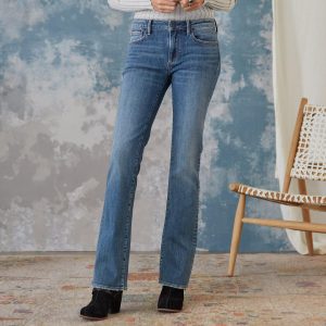 You can never go wrong with a classic. comfortable and always in style by Driftwood. Our love for bootcut can be dressed up or down in this medium wash. with an ever so light fade and whiskering. classic 5 pocket styling. Cotton/spandex. Machine wash. Imported. Sizes 24-32. 31 or 32 inseam; 9.5 rise; 16 leg opening.