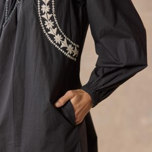 Easy to wear and bedecked with hand embroidery. this dress will quickly become a wardrobe staple. Organic cotton. Dry clean. Imported. Sizes XS (0–2). S (4–6). M (8–10). L (12–14). XL (16–18). Approx. 36l.
