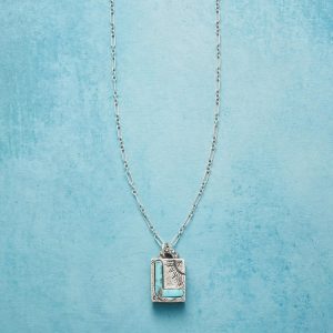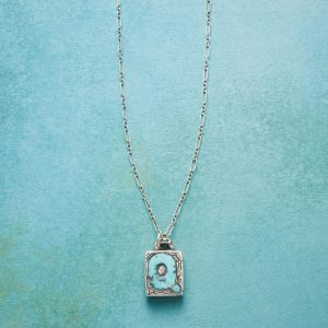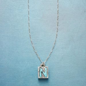 Jes MaHarry adds her personal touch. setting a hand-cut turquoise initial into a rustic bezel etched with joy on the side. love life on reverse. Sterling silver chain; Spring ring clasp. Exclusive. Handmade in the USA. Specify letter. 18l; pendant approx. 7/8l.